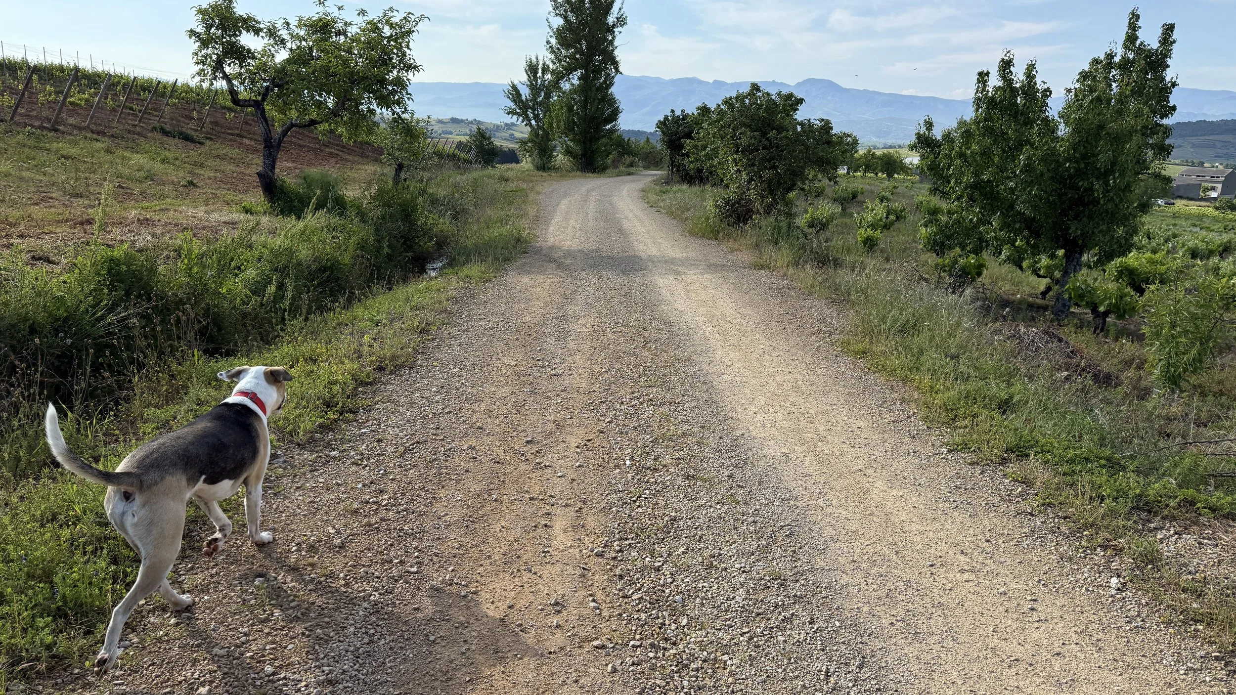 The trail out of Villafranca del Bierzo—an important pilgrim hub since the 9th century—was quiet this morning. With Sarria behind me, it was exactly what I needed. The path led Jax and me through vineyards full of Mencía grapes. I hadn’t heard of this grape before. Last night at dinner, I thought I was ordering a bottle from the Mencía region, only to learn it was the grape itself—and a very good one. This area is known for it. Worth remembering if you're passing through; I don't recall seeing it stateside.