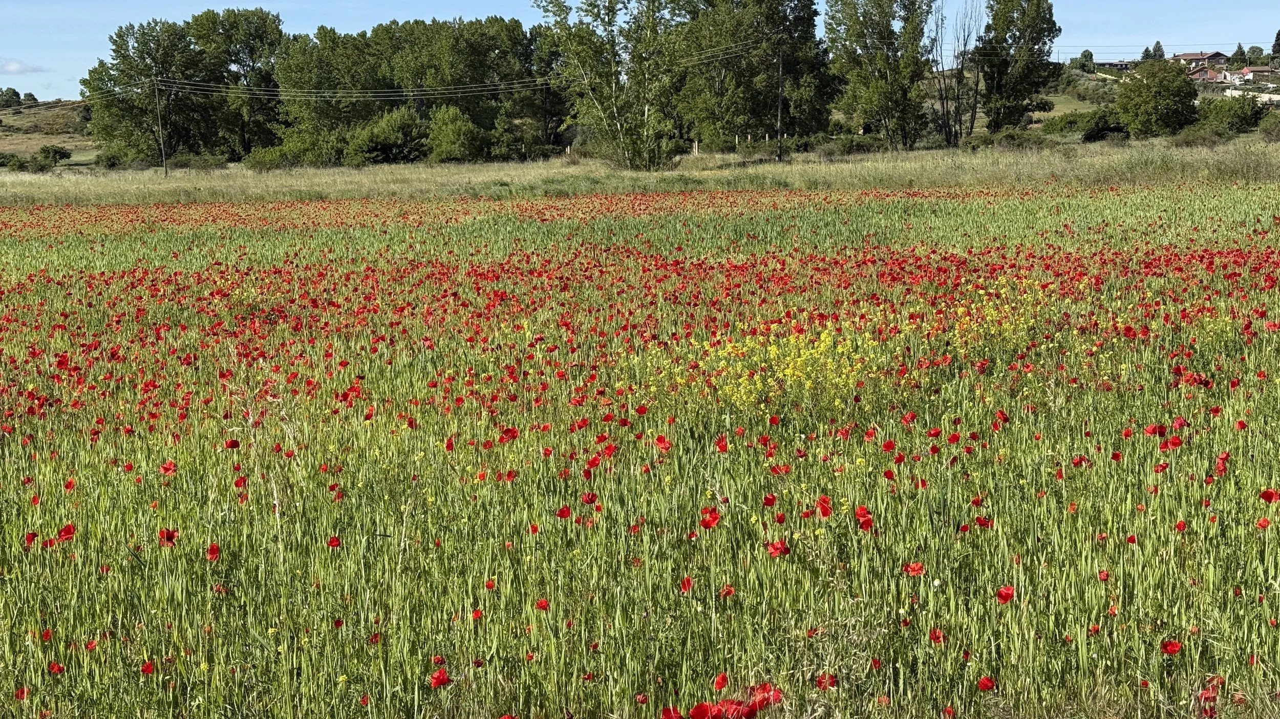 At 5 AM, like clockwork, one bird started the symphony that grew into a full sunrise chorus. Crisp morning in the mid-40s. After breakfast and goodbyes to Raul, Jax and I set off. I decided to skip the traditional Camino path, which curves north and east for 35 km. Instead, we took a diagonal shortcut to Reliegos via Google Maps: 32 km and a change of pace.