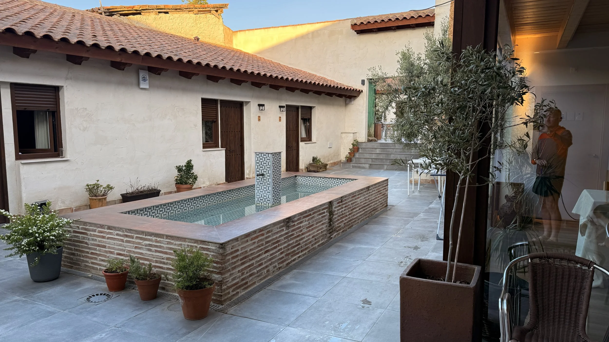 Juan seems to own most of the buildings in this tiny village of Valverde de la Virgen. From the outside, the auberge looked plain, but inside it opened into a beautiful courtyard with a fountain, tiled floors, and glassed-in seating areas. A trattoria was attached. They grow their own vegetables, maintain vines, and serve solid wines that they sell commercially.