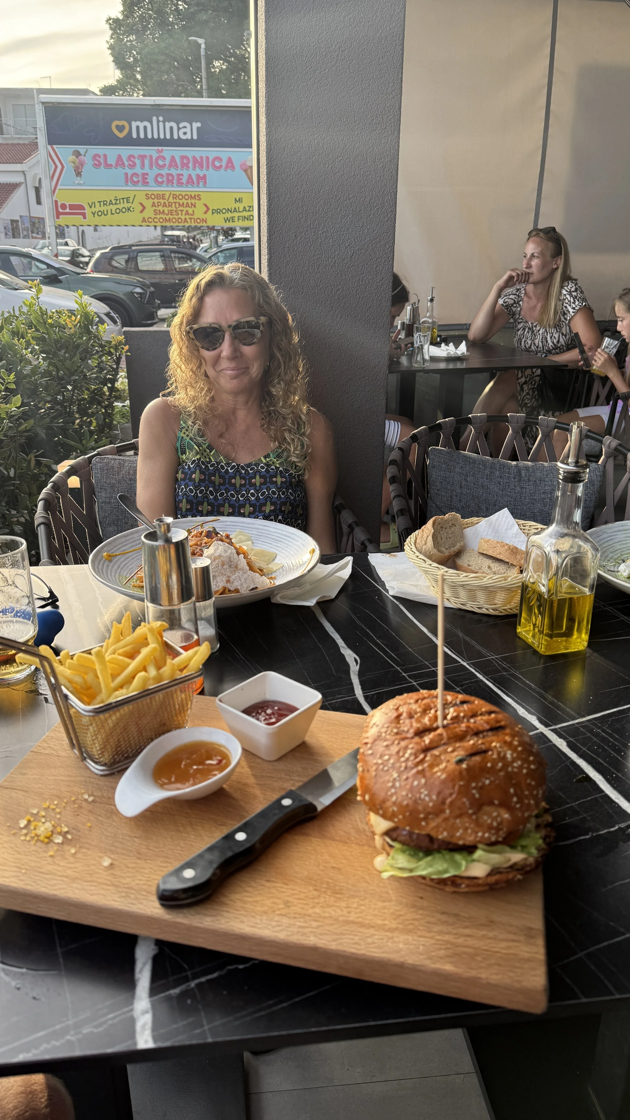 We skipped the busiest place this time and picked the highest-rated restaurant and it was great. A Greek salad, appetizer of anchovies, and a massive burger hit the spot. I knew the dehydration was behind me when I found myself craving a cold beer again—something I couldn’t even look at the day before.