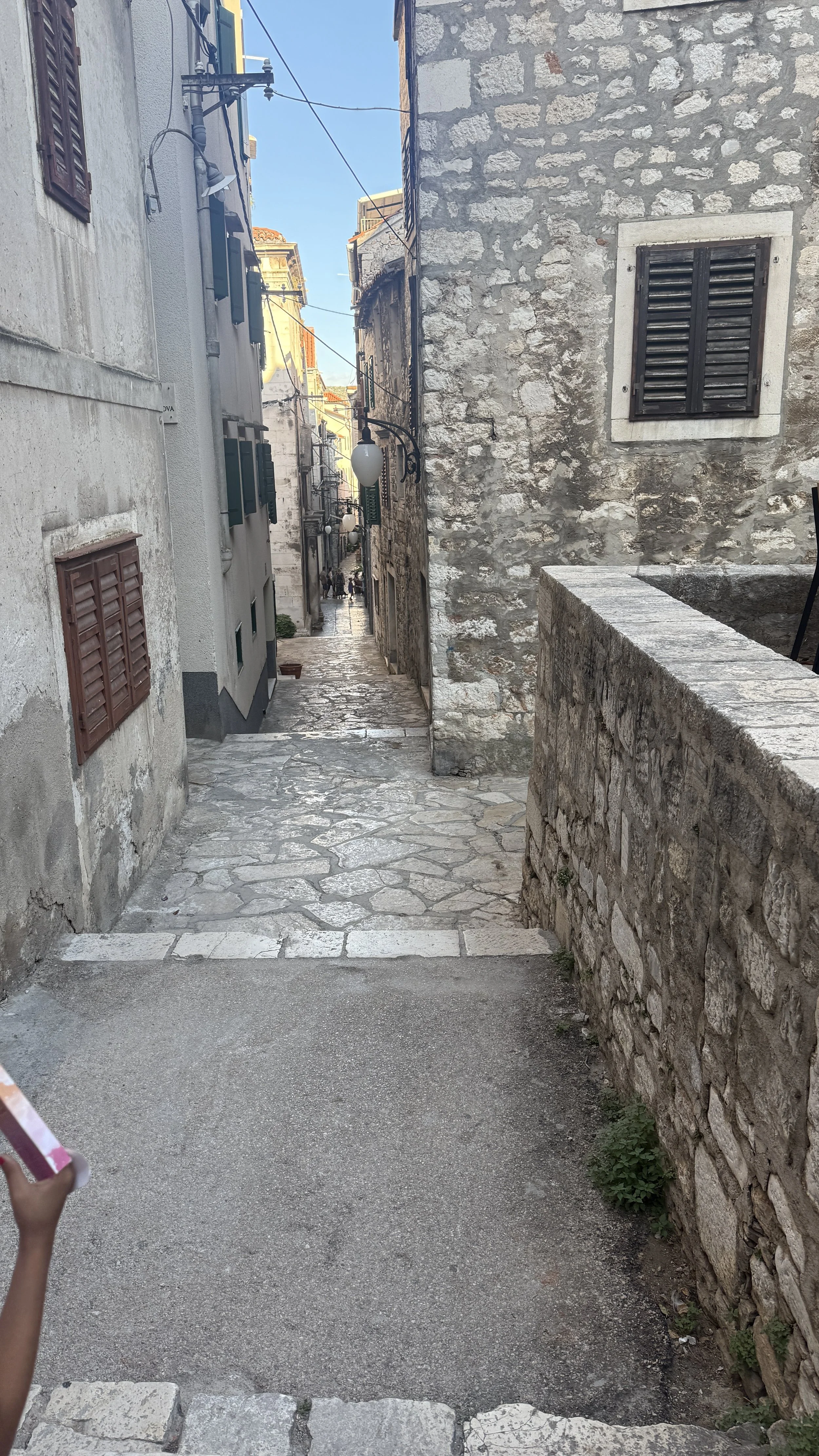 Climbing again, I took a cliffside road back up to the plateau and crossed a bridge into Šibenik, where we rented an apartment for the night. Šibenik is one of Croatia’s oldest native cities, founded by Croats in the 11th century and later fortified by Venice. It’s home to the Cathedral of St. James, a UNESCO World Heritage Site made entirely of stone without mortar—an architectural marvel of the 15th century.